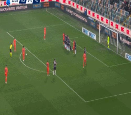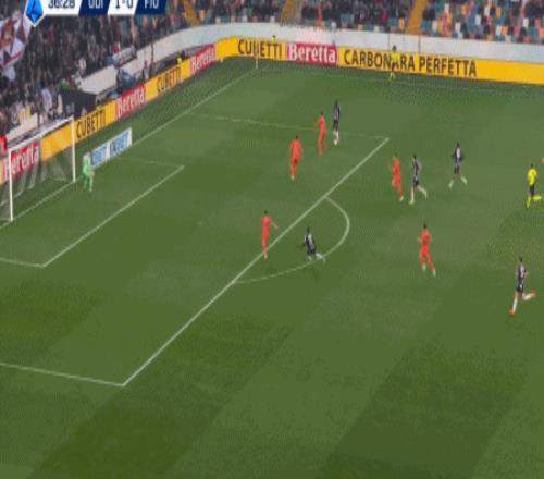 第90+4分钟,布克萨右路突破至禁区兜射远角破门,乌迪内斯3-0佛罗伦萨